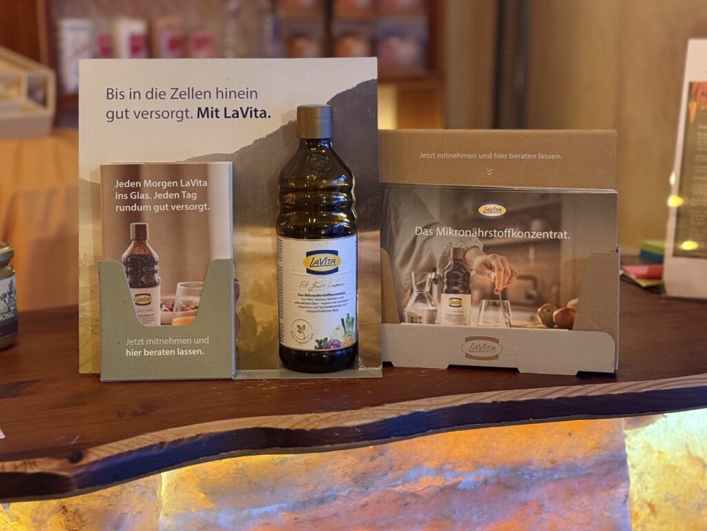 Als Lavita Partner bieten wir bei uns Lavita in 500 ml Flaschen vor Ort an. Auf Anfrage erhalten Sie bei uns einen Vorteilscoupon, einmalig pro Haushalt.