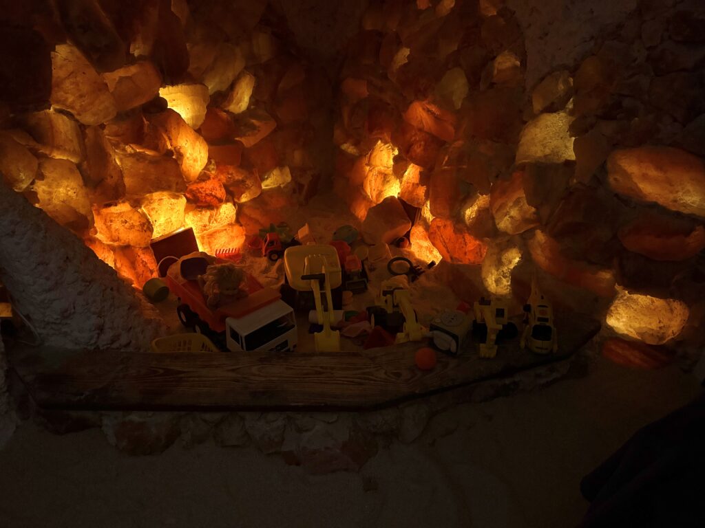 Während der Kinderstunden (Dienstag bis Freitag je 16 Uhr + Sa. 10 Uhr, individuelle Termine auf Anfrage möglich), können unsere kleine Gäste unbeschwert im Salz spielen und atmen gleichzeitig die wohltuende Salzluft ein. Sie lassen ihrer Kreativität freien Lauf, bauen Burgen, spielen wie im Sandkasten, bei uns natürlich mit Salz ;o)… Tagesmütter- und -väter sowie Kitas können gern bereits ab 9 Uhr kommen.